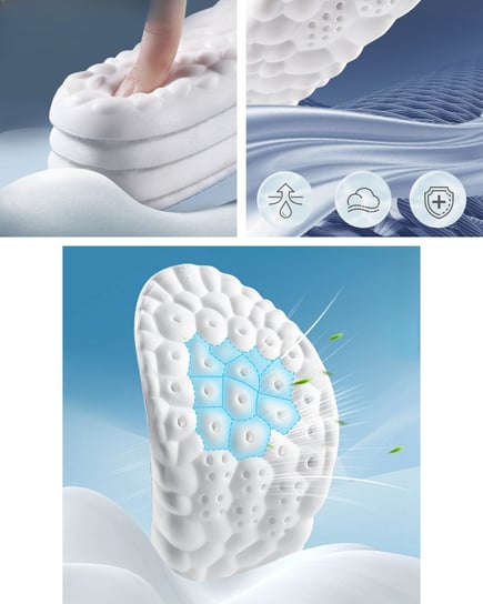 🔹 Amortiguación inteligente 360°: La espuma de memoria se adapta a la forma de tu pie, reduciendo el impacto y la presión con cada paso.