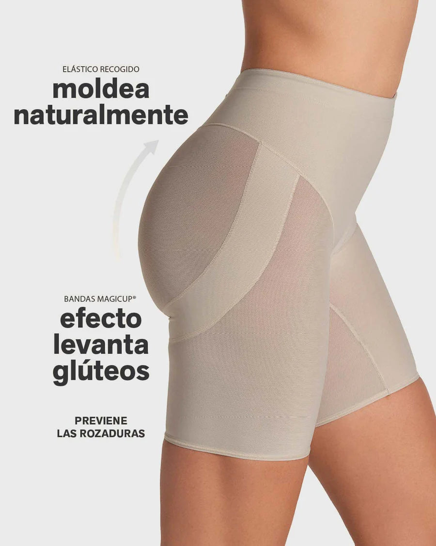 Compresión suave que reduce visualmente barriga y rollitos al instante.